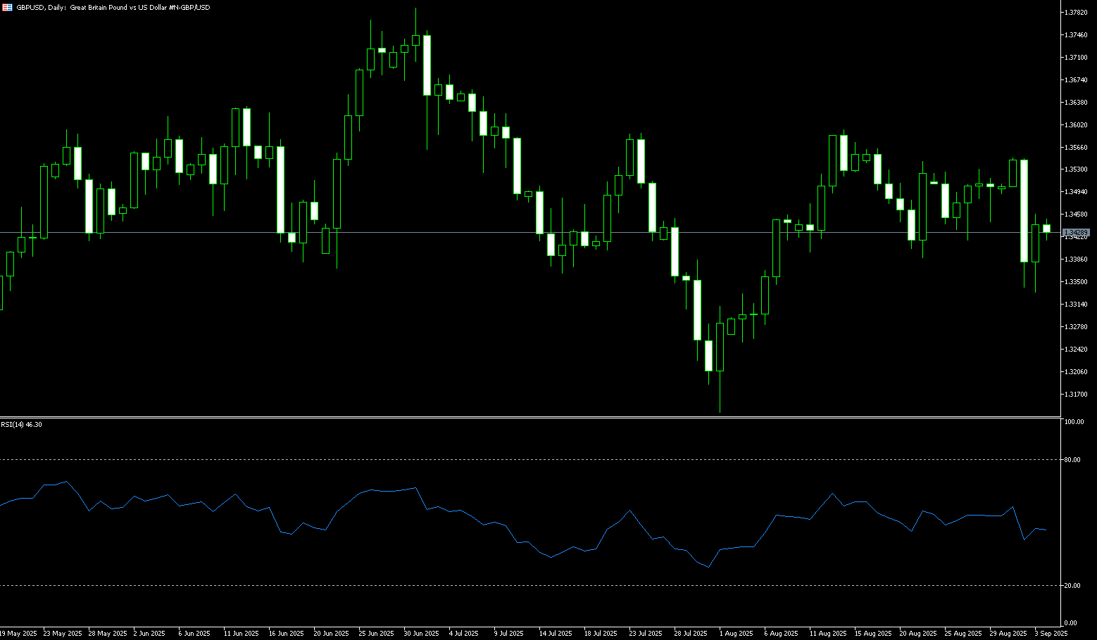 GBP/USD continued its four-day downtrend, trading around 1.3500 in Asian trading on Monday. A bearish shift is emerging as technical analysis on the daily chart suggests the pair is poised to break below an ascending channel pattern. However, the 14-day relative strength index (RSI) remains below the 50 level, reinforcing the bearish bias. Furthermore, the pair is trading below its 20-day simple moving average at 1.3522, indicating weak short-term price momentum. GBP/USD is testing its key support level at the 1.3400 round number. A break below this channel would confirm the active bearish bias and exert downward pressure on the pair, potentially testing the monthly low of 1.3333 recorded on September 3. On the upside, GBP/USD could target near-term resistance at the 20-day simple moving average at 1.3522, followed by last Friday's high of 1.3560. A break above these levels would improve short- and medium-term price momentum and bring the pair closer to the psychologically important 1.3600 level.