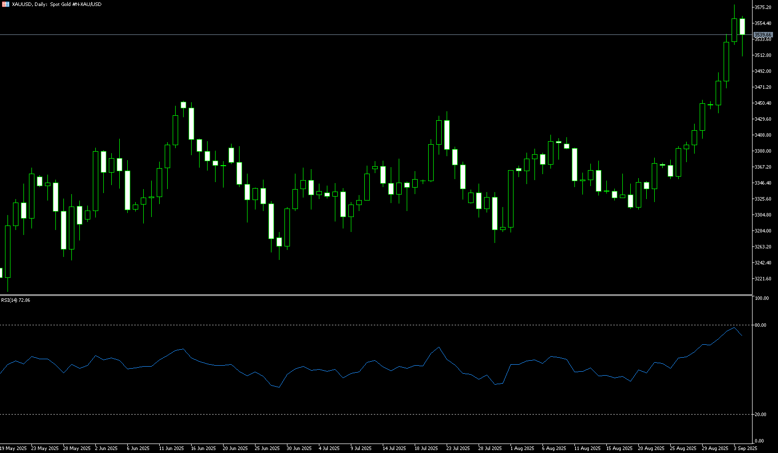 Gold prices surged to an all-time high of $3,749 per ounce on Monday, as investors await key US PCE inflation data and speeches from several Federal Reserve officials this week for further policy guidance. Last week, the Fed implemented its first interest rate cut of the year and hinted at further cuts to come amid a weakening labor market. Markets are currently pricing in another 25 basis point rate cut at the Fed's final two meetings of the year, in October and December. Expectations of continued monetary easing have significantly fueled gold's 40% surge so far this year. Gold is also supported by safe-haven demand due to ongoing geopolitical tensions and concerns about the economic impact of President Donald Trump's tariffs, coupled with aggressive central bank buying and continued ETF inflows.