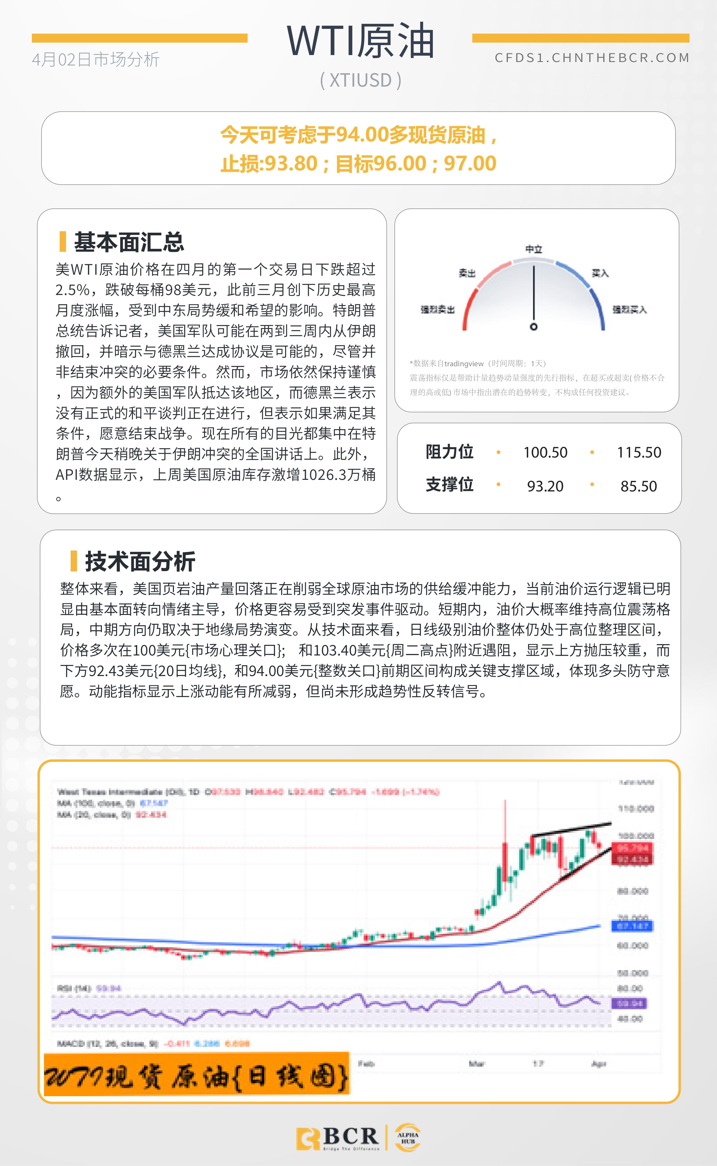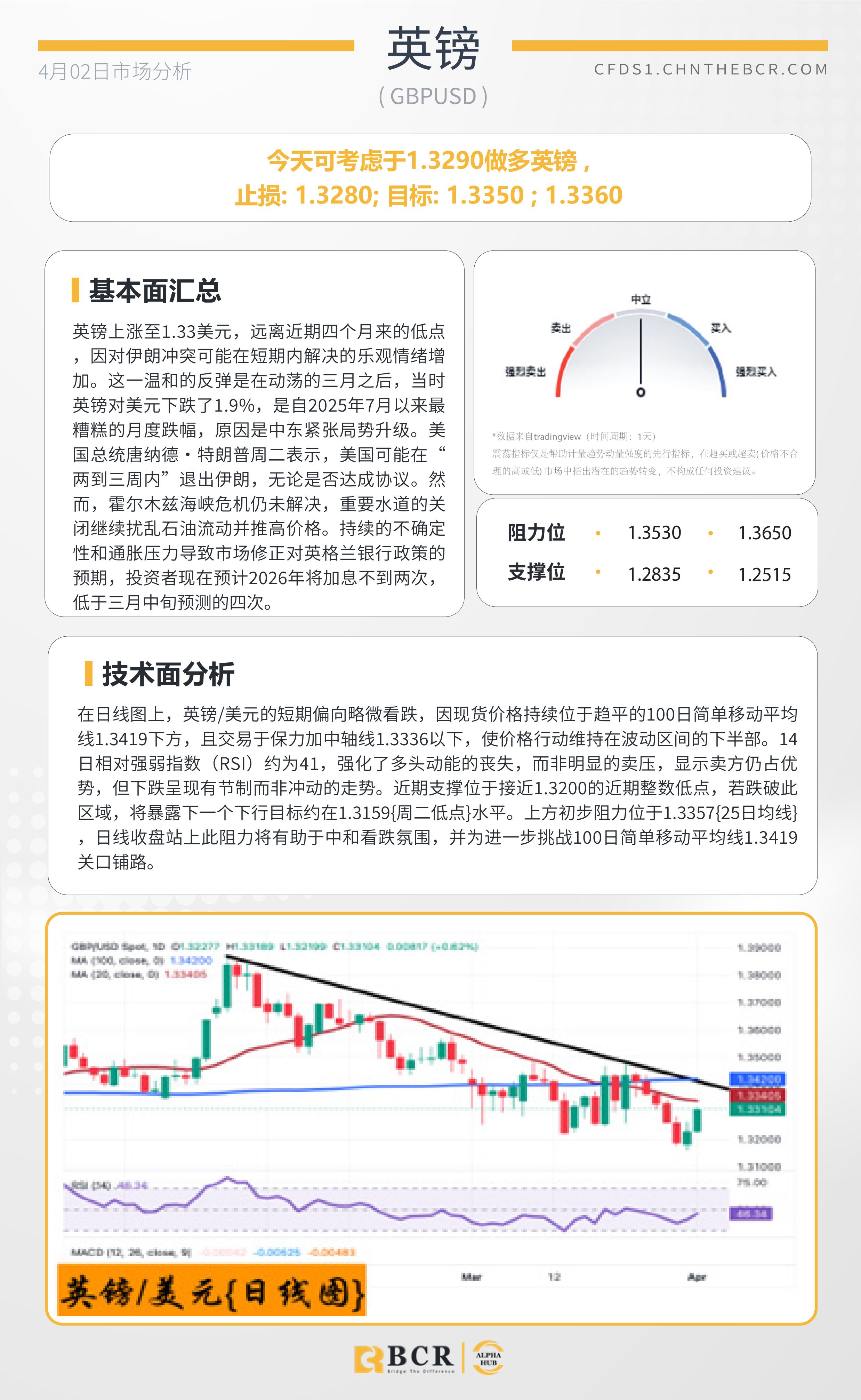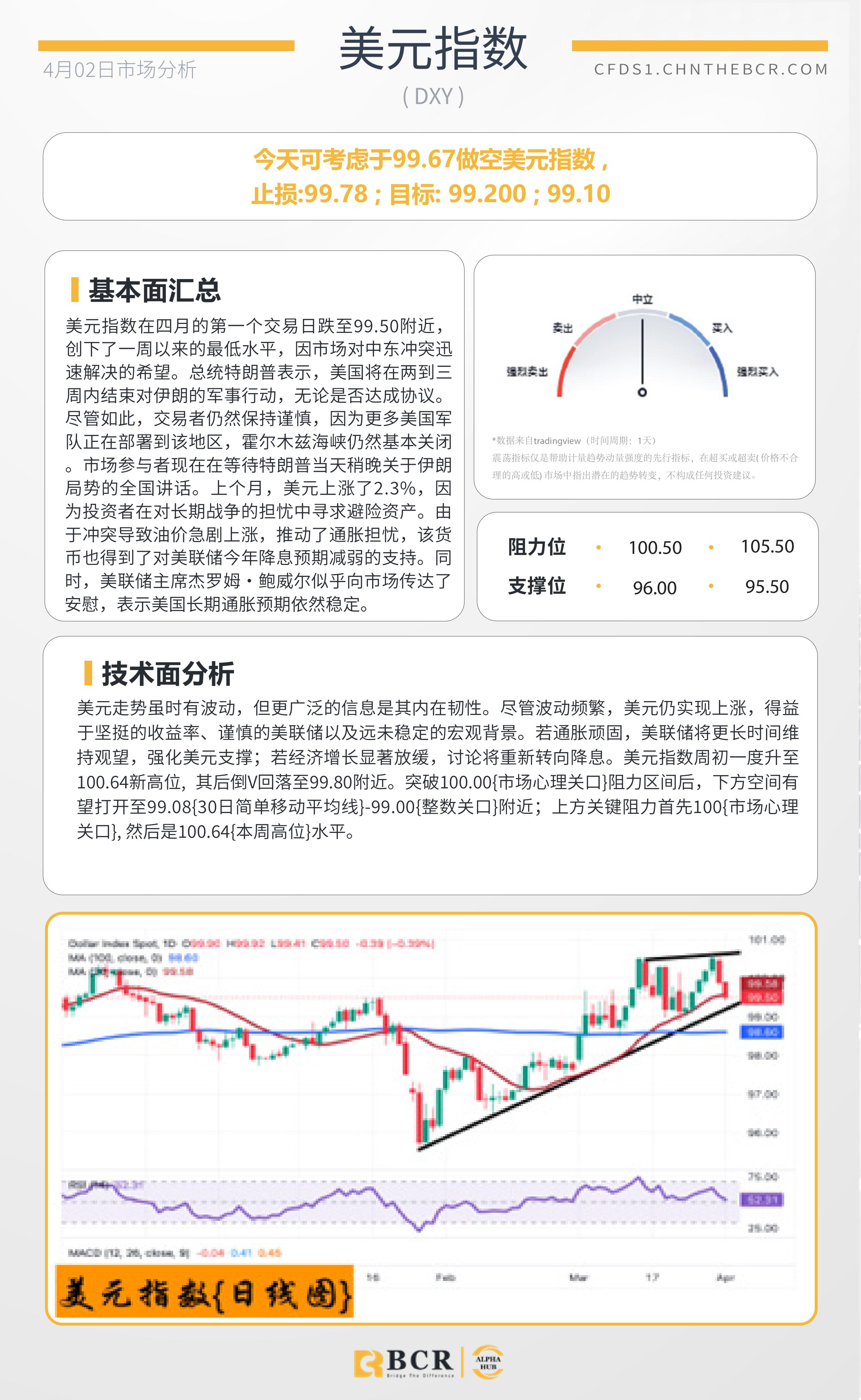 每日分析 2026年4月2日 | 特朗普释放伊朗退出信号,美元跌至一周低点;油价跌破98美元;黄金价格反弹;英镑和澳元走强