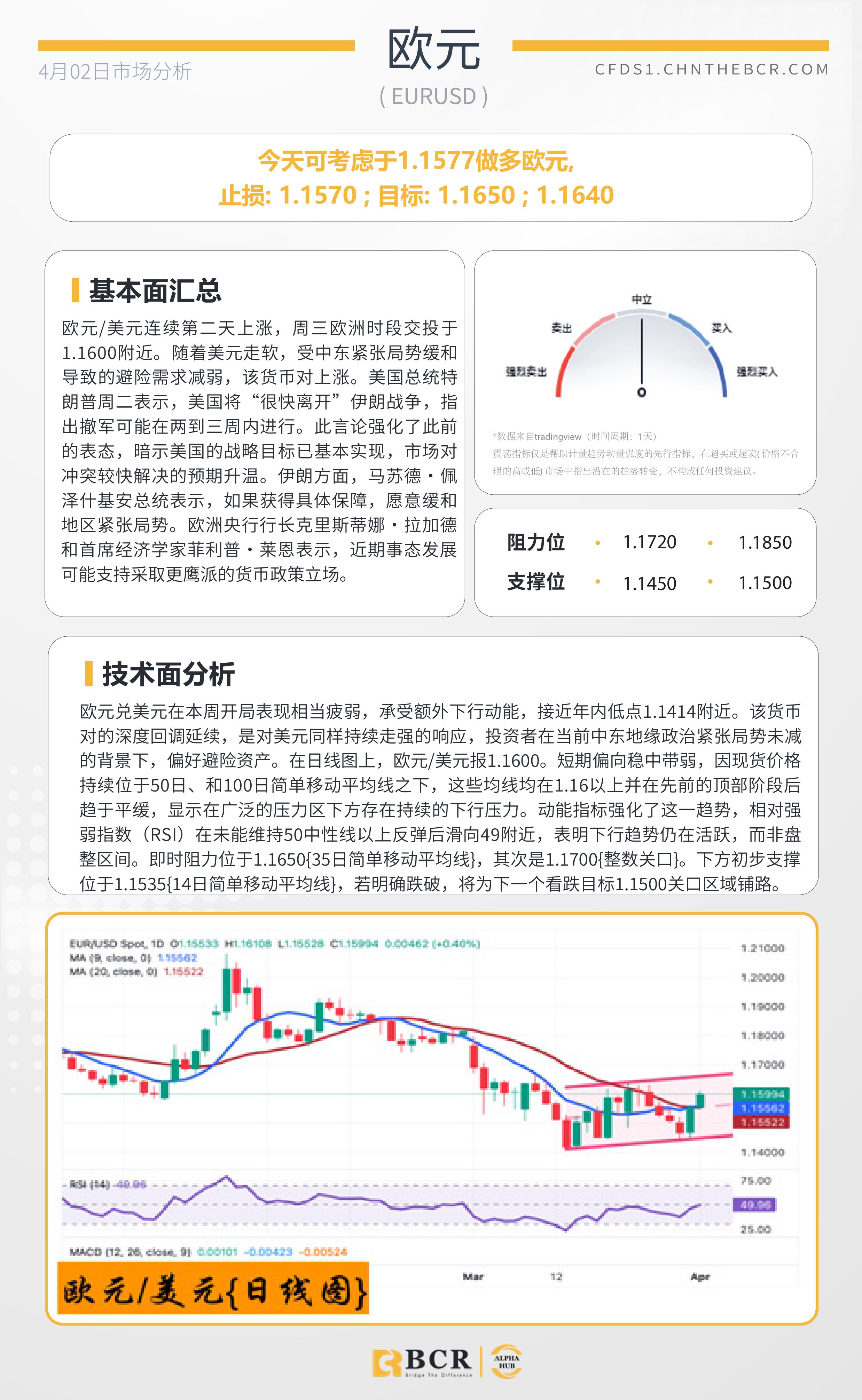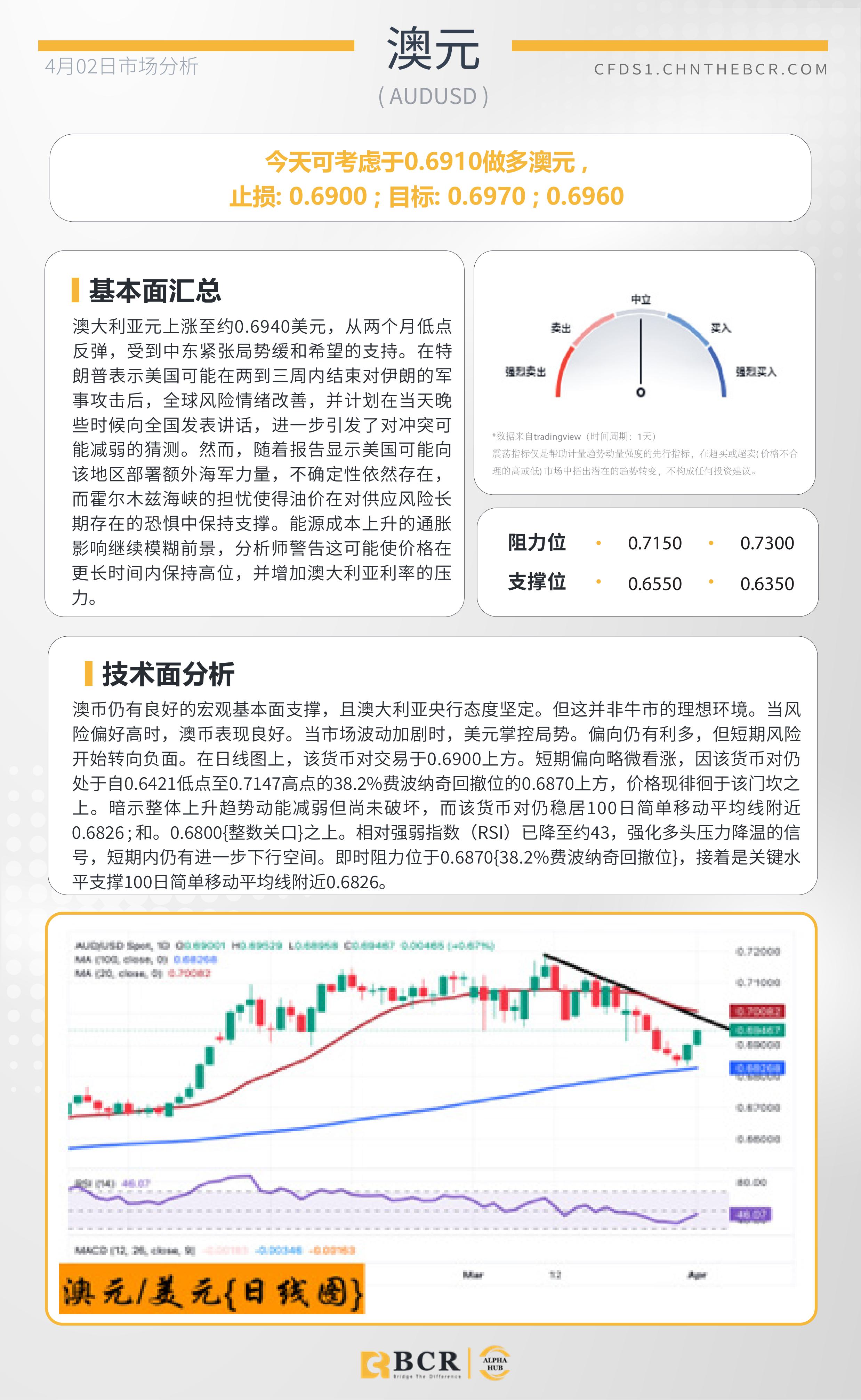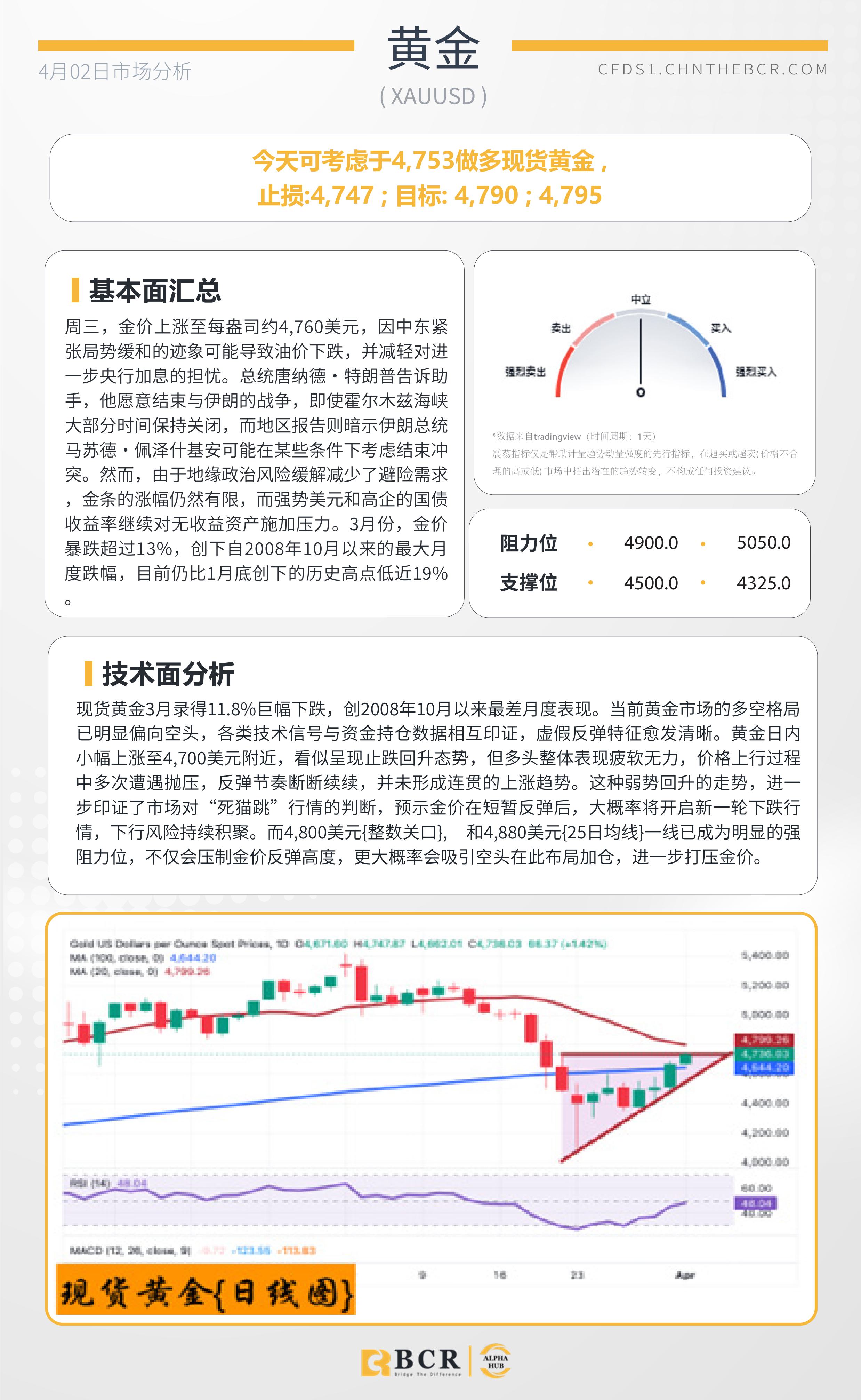 每日分析 2026年4月2日 | 特朗普释放伊朗退出信号,美元跌至一周低点;油价跌破98美元;黄金价格反弹;英镑和澳元走强